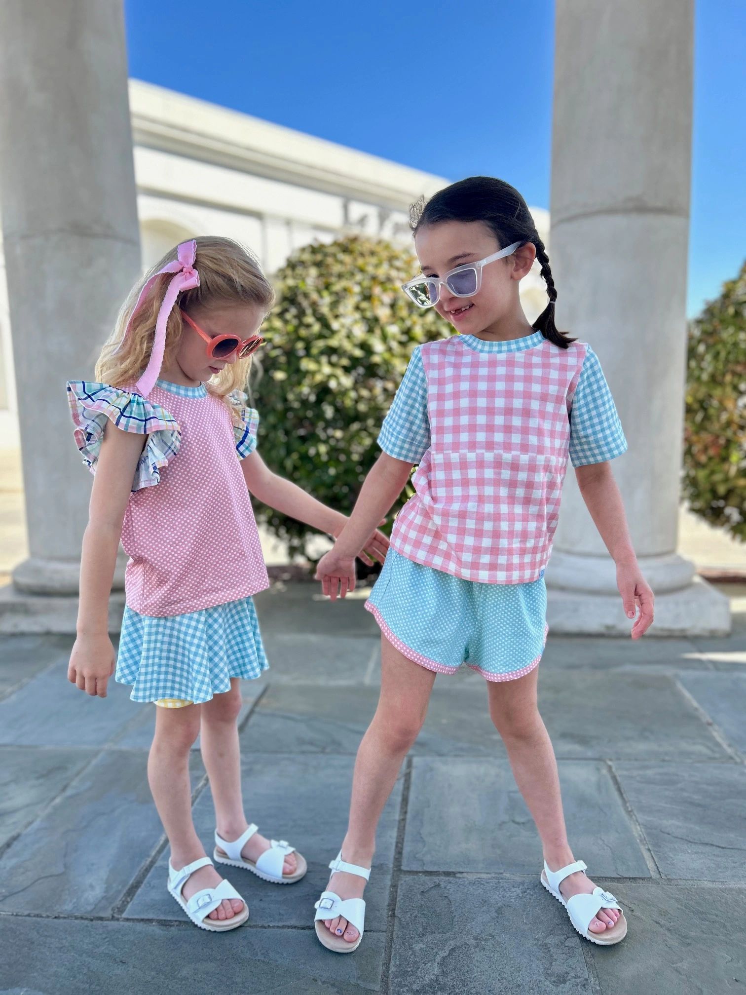 My name is Caroline Meaux Reaux. I am a designer with 20 years of experience in interior design and home design, but most importantly a mother. Through the privilege of raising my children, I realized there was a need for a dressing experience for bright, curious and creative kids. I have taken my design expertise in color, proportion and scale and created a brand of clothing for young girls. A mixed.match box comes with several tops and bottoms that will all coordinate. This allows your little one to foster independence, creativity and confidence by dressing themselves with ease. You will be thrilled that they will always match! I will offer a box twice a year, Spring/Summer and early Fall. All pieces from both boxes will coordinate, giving them endless possibilities. Fabrics used are 100% cotton spandex, for comfort. Most importantly, our designs come without irritating inside tags. Get started and help your little one find the fun way to dress!
